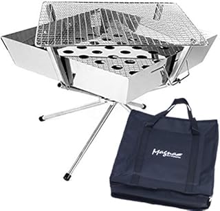 サイズは43×43cmの4人家族でも余裕のある大きさ。1.6mmの厚手ステンレス鋼板を使用しており、薪を豪快に入れても変形しない頑丈さが特徴です。組み立ては4本の脚を広げてロストル(底網)をセットするだけで、工具不要で約1分で設置できます。